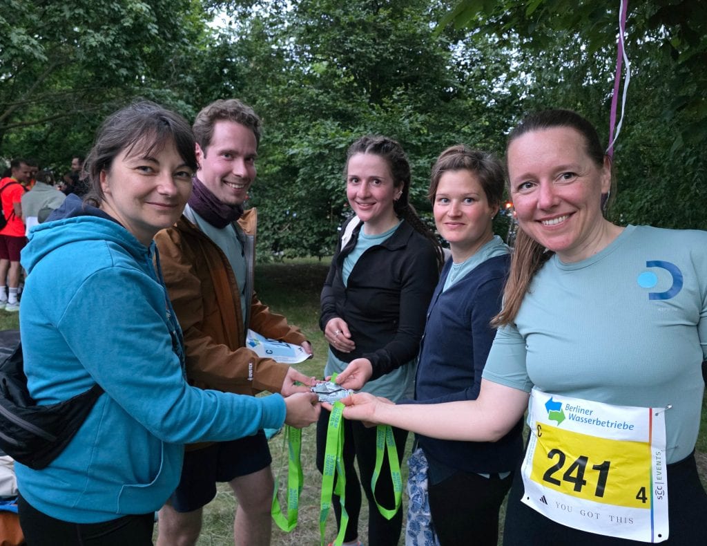 Six relay teams from the DRFZ took part in the Berliner Wasserbetriebe 5×5 km Team Relay on June 5, 2025. All 30 colleagues gave their best in the Tiergarten and crossed the finish line with a great feeling.